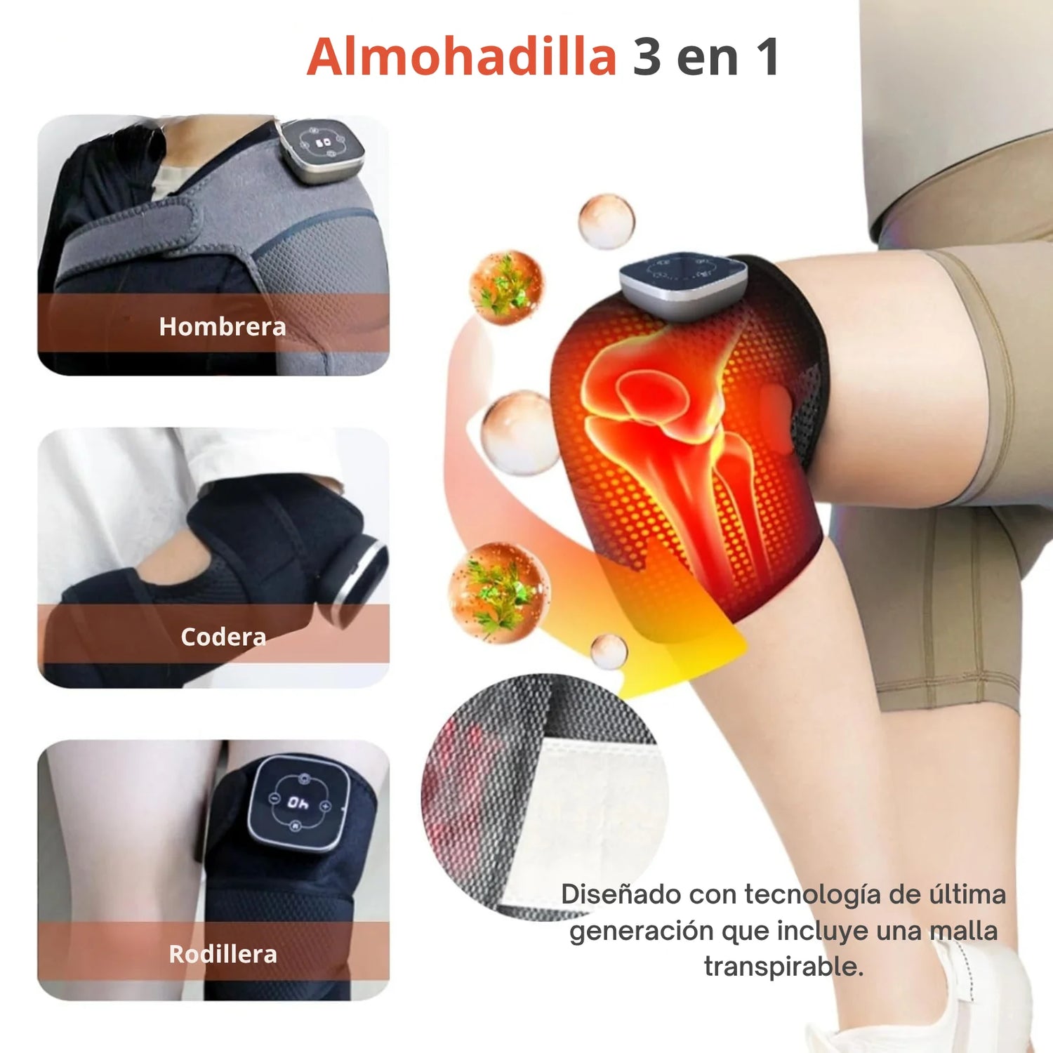 Combinando calor, masaje y compresión suave, ayuda a aliviar molestias, rigidez y esa sensación de pesadez que no te deja disfrutar el día.